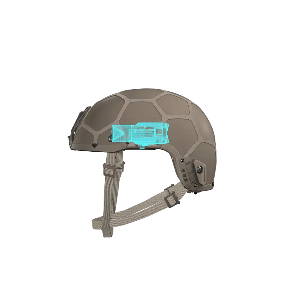 The Edgemount™ has an intelligent cable management system, allowing integration of wiring and connectors inside the helmet to enhance the HJELM™ combat helmet’s sensory technologies. This provides soldiers and technology manufacturers with the flexibility to arrange these devices for optimal function while safeguarding cables and connectors from damage or external snag risks.